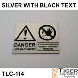 LASER ENGRAVED DANGER LIFT MACHINERY/ACCESS FORBIDDEN SIGN
