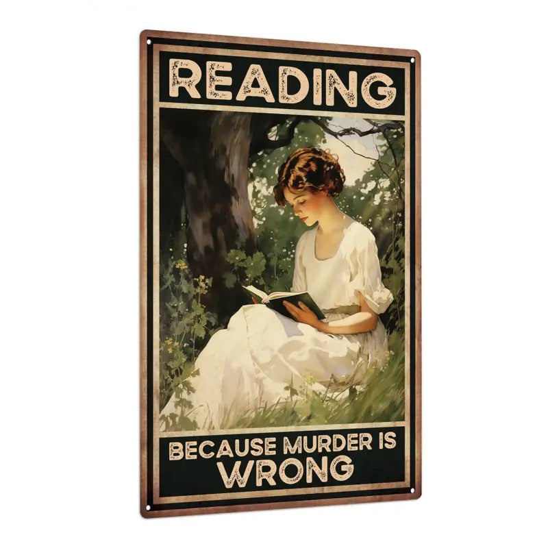 Reading Because Murder is Wrong - UV Printed Novelty Metal Sign - 20cm by 30cm