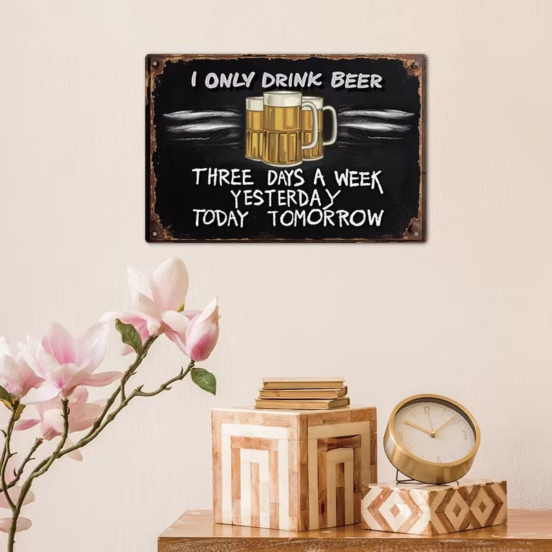 Add a hilarious spark to your home bar or man cave with our "I ONLY DRINK BEER" UV Printed metal sign. This fan favourite sign features the witty "Yesterday, Today, Tomorrow" punchline, brought to life with high-definition UV printing that ensures every letter and graphic remains crisp and vibrant. Crafted from premium, rust-free aluminium, this sign is designed to withstand the humidity of a busy bar or the sun of an outdoor patio without fading or peeling. It’s the perfect conversation starter for social gatherings and a must-have gift for beer enthusiasts who appreciate a good laugh alongside a cold brew.
