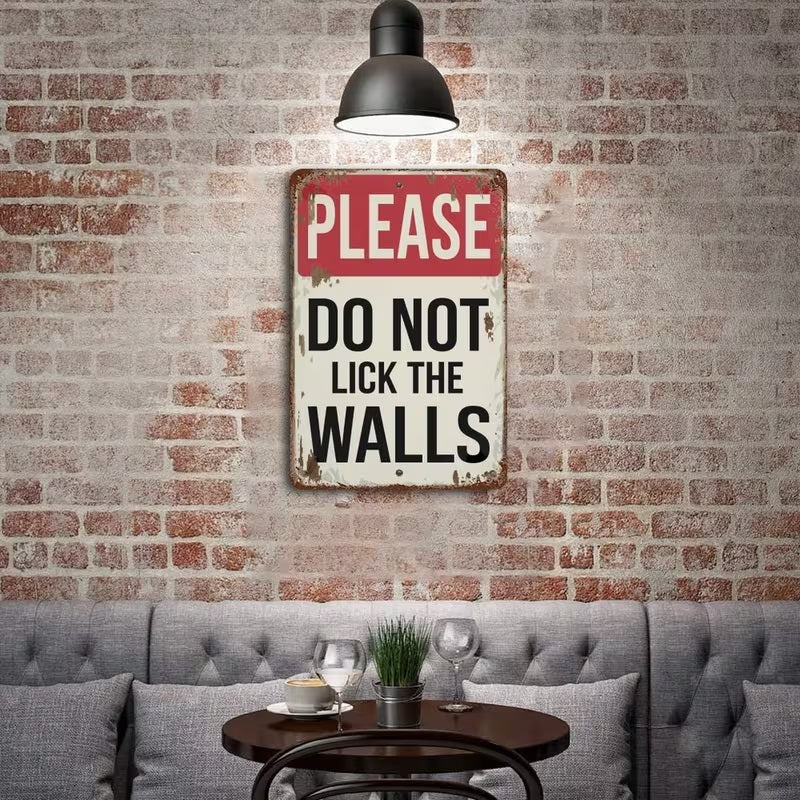 Embrace the absurd and keep your guests on their toes with our hilarious "PLEASE DO NOT LICK THE WALLS" UV Printed metal sign. Perfect for home décor, eccentric offices, or quirky cafes, this sign uses high-definition UV-resistant printing to ensure the vibrant colours and sharp lettering remain crisp for years. Crafted from industrial-grade, rust-free aluminium, it offers a sleek and professional finish that turns a bizarre request into a high-quality piece of art. Whether you are decorating a nursery, a breakroom, or just want to confuse your neighbours, this durable plaque is the ultimate conversation starter.
