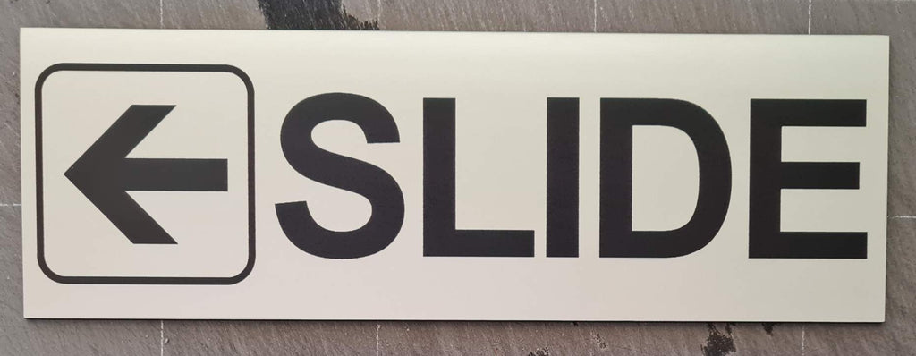 Slide with left arrow graphic sign to be used on sliding or automatic sliding doors.
