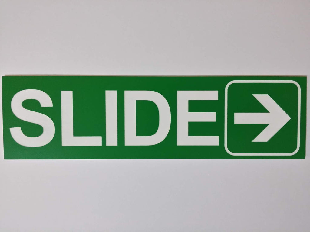 SLIDE WITH RIGHT ARROW GRAPHIC Sign / Plaque